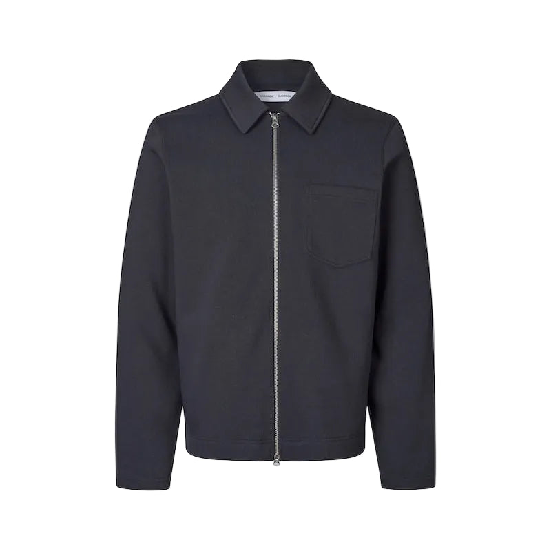 Sweatshirtjacka med tvåvägs dragkedja framtill. Enkel pålappsficka på bröstet. Huvudmaterialet består av en lite tjockare elastisk blandning av ekologisk bomull och återvunnen polyester.